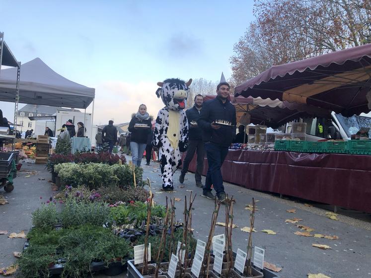 La mascotte a arpenté le marché à la rencontre des clients et des commerçants.