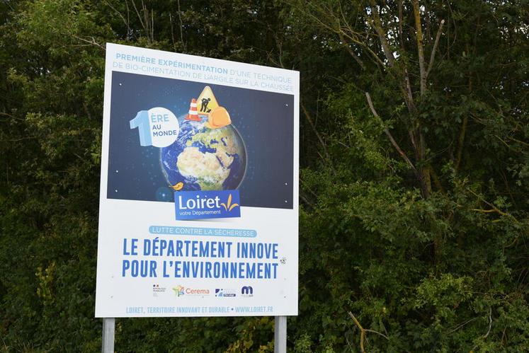 Jeudi 20 juillet, en présence d'Hervé Gaurat, vice-président du Département en charge des mobilités et de l’aménagement du territoire, et des représentants du Cerema, la start-up suisse Medusoil a présenté la nouvelle solution qu'elle a développée : la bio-cimentation. Grâce à l’injection d'un produit à base de carbonate de calcium dans les accotements de la chaussée, les particules de calcite contenues dans l’argile se minéralisent et suppriment ainsi les effets de l’eau sur ces sols. Cette expérimentation à taille réelle pour limiter les effets du retrait-gonflement de l’argile sous les chaussées, est une première mondiale. Selon Sandrine Eugène, directrice de l'ingénierie et des infrastructures du Loiret, 70 % du sous-sol départemental serait constitué d’argile. La bio-cimentation serait donc « une solution technique qui permettrait d'éviter les réparations ponctuelles des routes, et ainsi rendre les chaussées du département plus pérennes ».