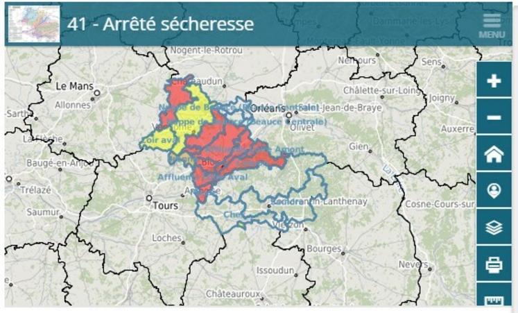 La carte interactive sécheresse de la chambre d'Agriculture 41