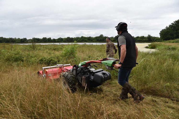 Le 25 juillet, la Fédération départementale des chasseurs a organisé une demi-journée de démonstration pour faire tester aux associations de chasse spécialisées un engin conçu pour l’entretien de zones humides.