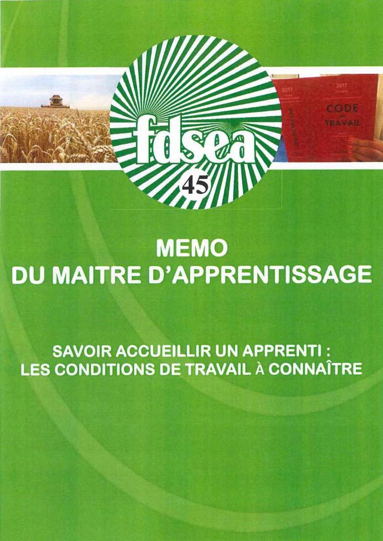 Le livret mémo du maître d’apprentissage est également disponible dans les locaux de la FDSEA du Loiret ou bien peut être adressé par mail.