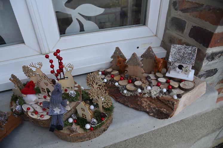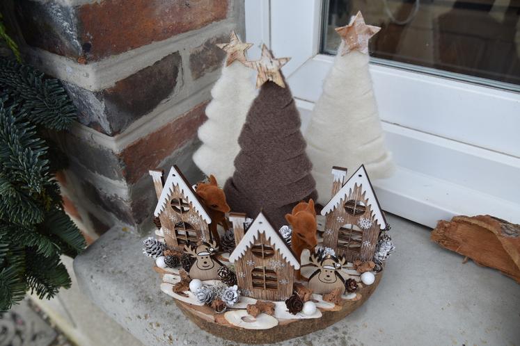 La période des fêtes de fin d’année se prépare dès le mois de juillet avec les commandes des biens nécessaires. Antonia Torpier aime également glaner certaines matières premières – morceaux de bois, branches, pommes de pin – ou réaliser des décors elle-même, comme des petits sapins recouverts de laine.
