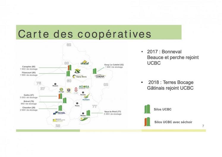 Douze coopératives des Hauts-France, d’Ile-de-France, de Normandie et du Centre-Val de Loire composent actuellement l’UCBC : Agora, Bonneval Beauce et Perche, Cerena, Coopérative agricole de Milly-sur-Thérain, Noriap, Sana Terra, Scael, Sevepi, Terre Bocage Gatinais, Ucac, Uneal et Valfrance. Quelques chiffres : 350 agriculteurs livreurs ; 18 000 t de capacité de stockage ; 10 000 t collectées pour la récolte 2017 ; 25 000 t d’ici la récolte 2021...