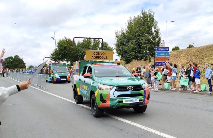 Pour sa 4e participation, la FNSEA a renforcé son dispositif dans la caravane du Tour de France avec un nouveau char.