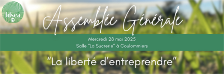 L'assemblée générale de la FDSEA 77 se tiendra mercredi 28 mai à Coulommiers, dans la salle La Sucrerie. Les adhérents sont conviés à un buffet dès midi et au dîner qui viendra clôturer les échanges de la journée.