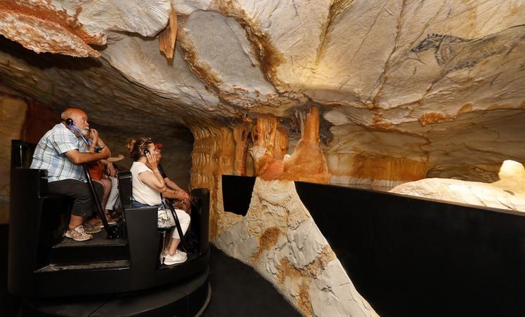 Ouvert en juin 2022, un bâtiment blanc moderne entouré d’eau accueille les visiteurs pour une plongée dans la préhistoire. Plus d’un million de personnes s’y sont déjà rendues. Muni d’un casque audio, à la manière d’un plongeur, le visiteur monte dans une cage de descente scénographiée avant de s’installer dans des nacelles guidées par infrarouge. Durant plus de trente minutes, il sillonne les allées de la grotte pour y découvrir des stalactites et stalagmites sculptées naturellement et de nombreux dessins. Près de 500 gravures constituent un immense bestiaire comprenant chevaux, mais aussi plus surprenant des pingouins et phoques auxquels s’ajoutent des représentations humaines, des empreintes négatives de mains.