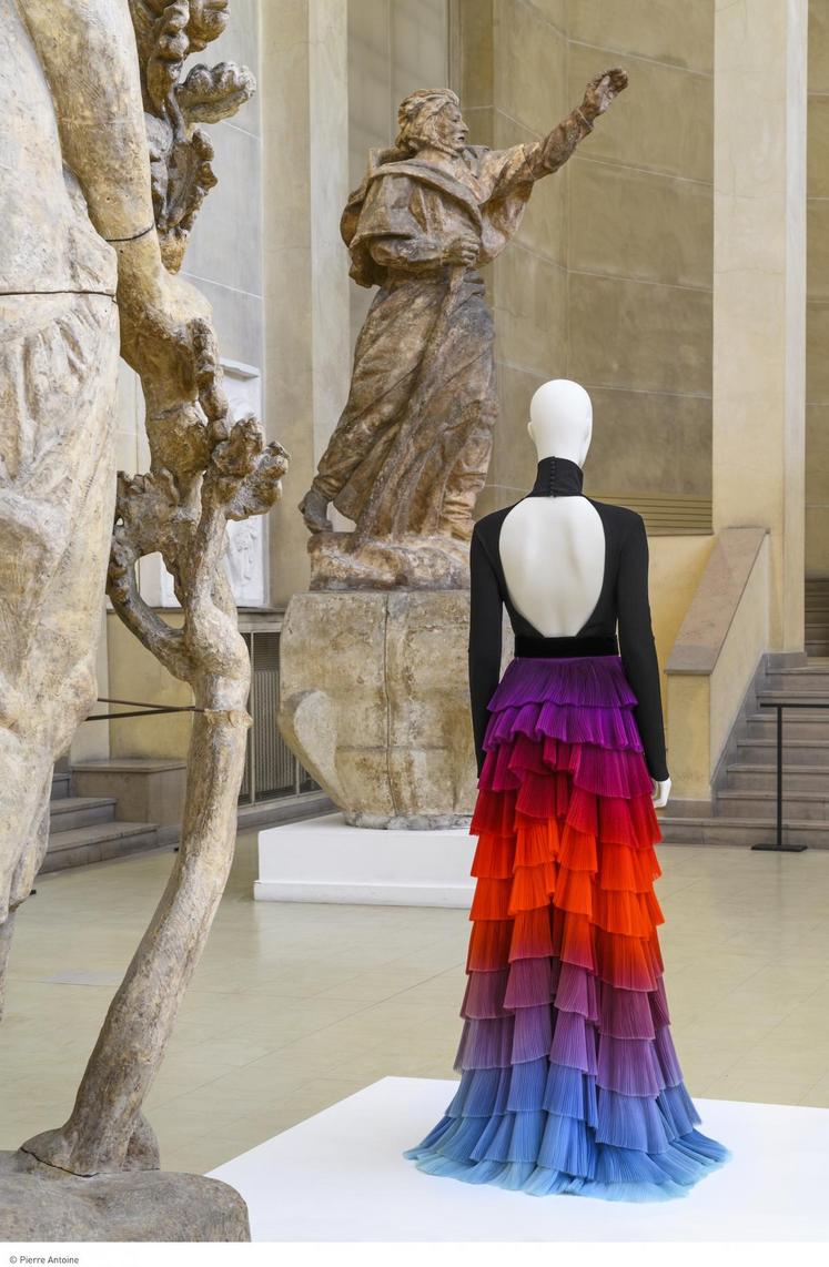 Jusqu’au 17 novembre, le musée de la mode de la ville de Paris met le dos à l’honneur, en faisant dialoguer robes de créateurs et sculptures de maître.
