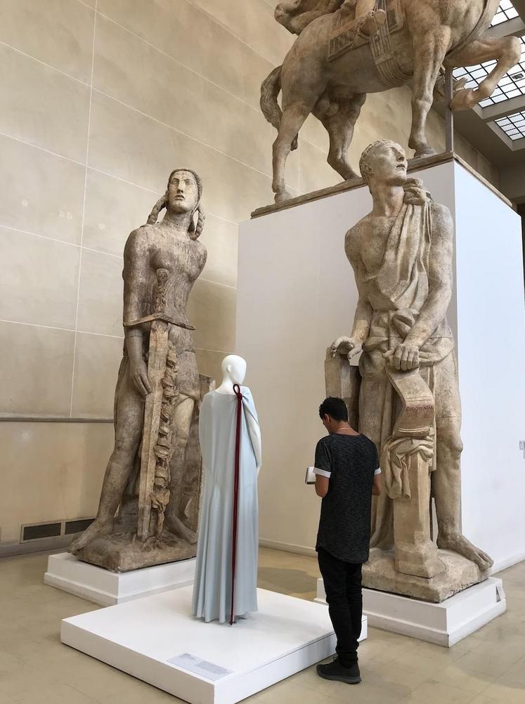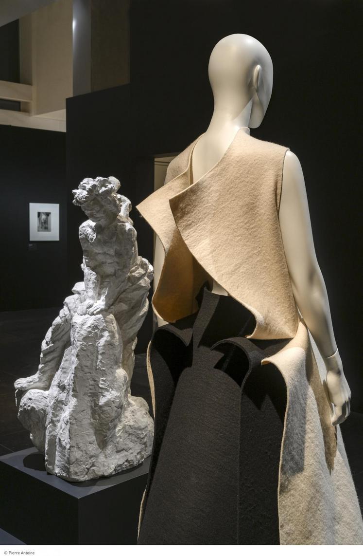 Le mariage entre sculpture et couture paraît improbable, pourtant les œuvres semblent se regarder, se répondre, et se mettent en valeur les unes les autres. Tenues d’hier et d’aujourd’hui sont présentées, habits d’ici et d’ailleurs, vêtements quotidiens et haute couture.