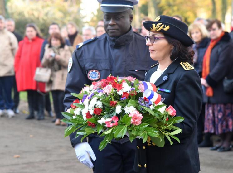 Comme le veut la tradition républicaine, la nouvelle préfète d’Eure-et-Loir, Fadela Benrabia, a déposé une gerbe au monument aux morts, puis une autre à la stèle Jean-Moulin, avant de prononcer quelques mots à l’Hôtel de Ligneris devant un parterre de représentants des corps constitués, de la société civile et d’élus, le 18 novembre à Chartres, officialisant ainsi son installation.