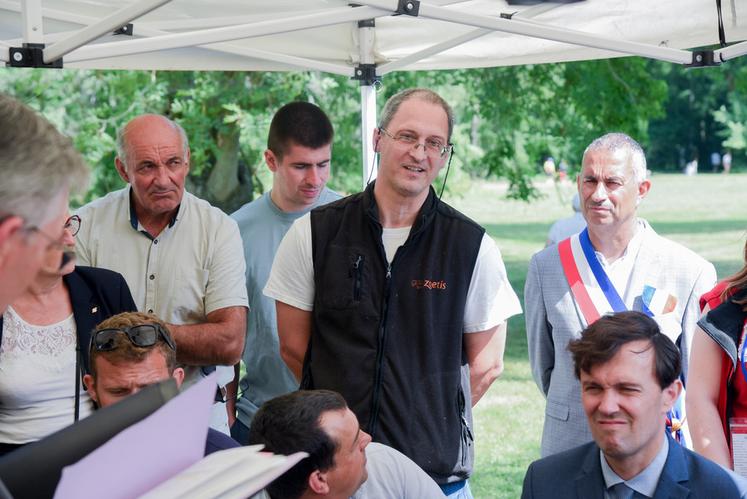 Le 18 juin, à Courtalain. Lors de son passage au comice, le ministre de l'Agriculture, Marc Fesneau (à g.) a pris le temps d'écouter tous les intervenants.