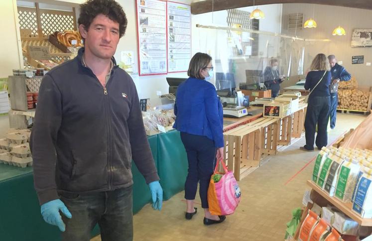 Photo : Le 20 mars, à Ouerray. Arnaud Lemaire et son équipe assurent la continuité du service de la Ferme du Verger.