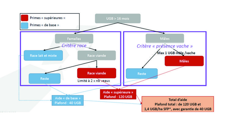 À partir de cette année, les enveloppes des aides aux bovins allaitants (ABA) et aux bovins laitiers (ABL) ont été fusionnées pour constituer une seule aide à l’UGB*. Pour bien comprendre cette nouvelle aide qui est à demander jusqu'au 15 mai, il faut oublier tous les schémas précédents de l’ABA ou de la Prime au maintien du troupeau de vaches allaitantes (PMTVA).