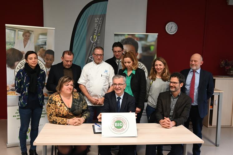 Le président de la Région Centre-Val de Loire, François Bonneau, est venu présenter ses vœux aux équipes de cuisine du lycée horticole de Blois ainsi qu’aux élèves mardi 10 janvier. À cette occasion, avec au minimum 22 % de produits bio dans ses services de restauration, le lycée horticole de Blois a été récompensé par le label « Territoire bio engagé ». Le président de Région a ainsi félicité l’établissement : « Sur une centaine d’établissements dans la région, vous êtes le deuxième lycée récompensé par ce label. Cela montre le travail et la conviction que vous avez mis en œuvre pour y arriver ».