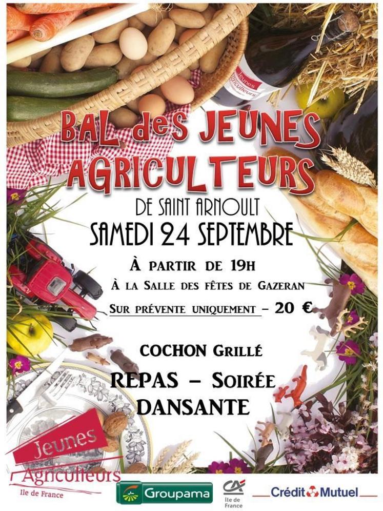 Les Jeunes agriculteurs du canton de Saint-Arnoult (Yvelines) organisent un bal le samedi 24 septembre à partir de 19h à la salle des fêtes de Gazeran.