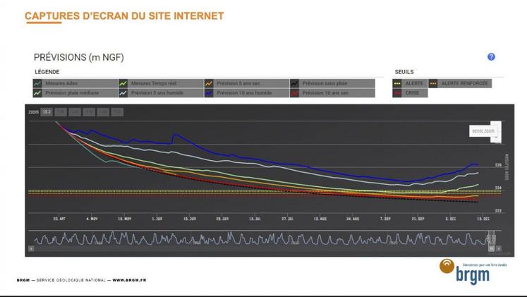 L’objectif est de pouvoir estimer la situation d’une nappe avec quelques mois d’avance. Il sera ainsi possible d’anticiper d’éventuelles restrictions ou de vérifier si une nappe réactive se remplit. Le site est en cours de finalisation et devrait être ouvert, sans restriction, cet automne.