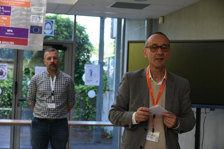 Jeudi 6 juin, à Bellegarde. En amont des ateliers, le directeur du CFA, Manuel Da Costa, a tenu à remercier les acteurs de la filière forêt présents.