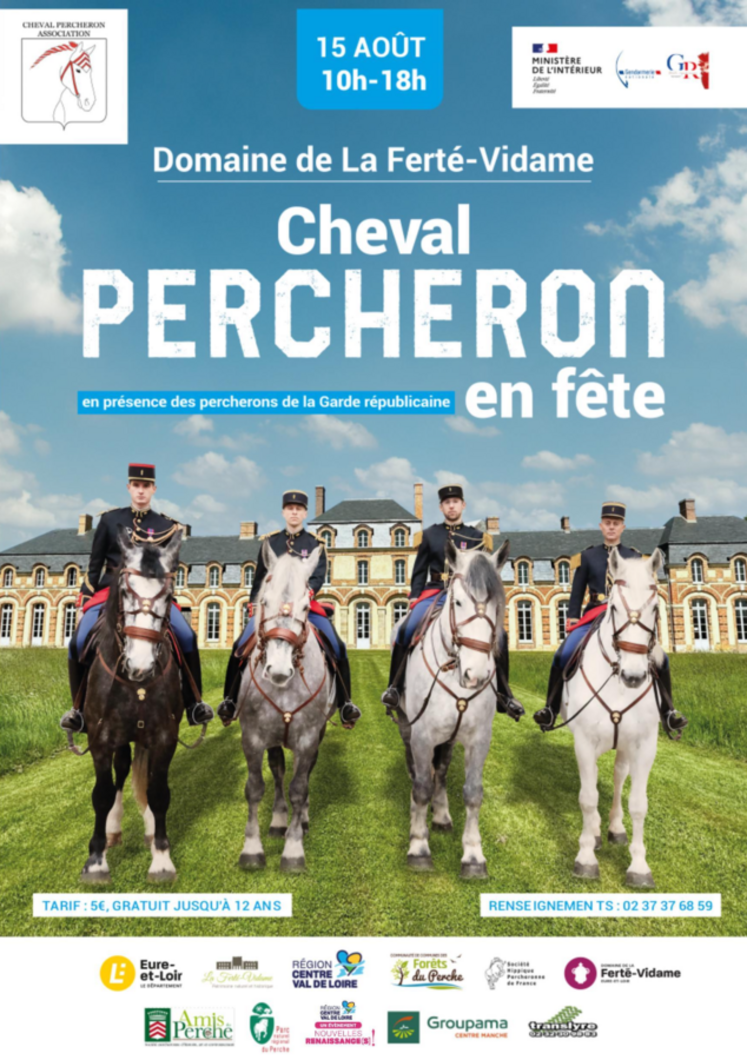 Le prestigieux domaine du château de La Ferté-Vidame servira de cadre vendredi 15 août au traditionnel Cheval percheron en fête, porté par la passion de Cheval percheron association - cheval percheron notre ami, qui regroupe tous les défenseurs de la race percheronne, qu'ils soient du Perche ou d'ailleurs.