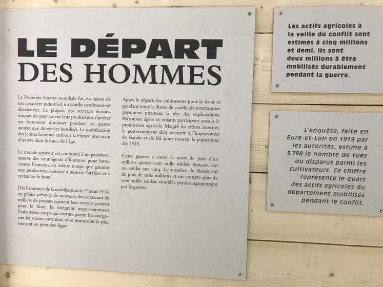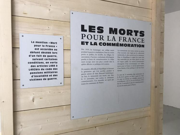L’objectif de cette exposition est double : un parcours artistique et un parcours pédagogique sur la Première Guerre mondiale. Appel au front, vie rurale, commémoration...