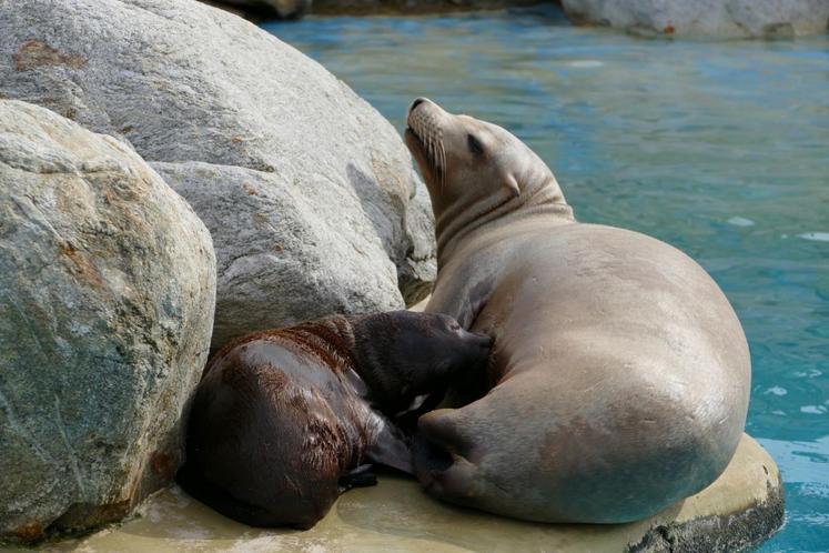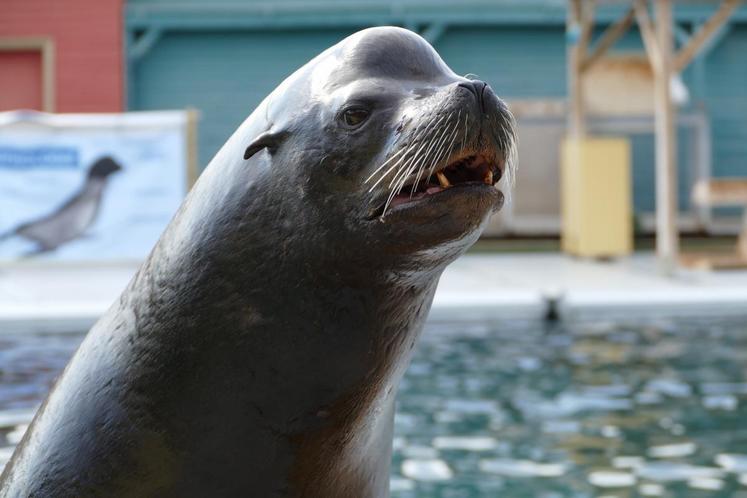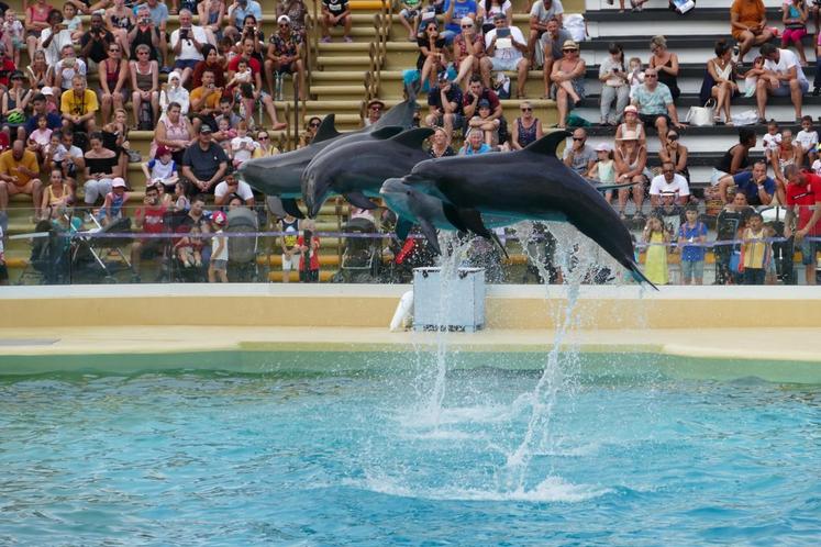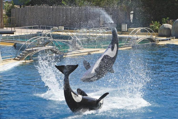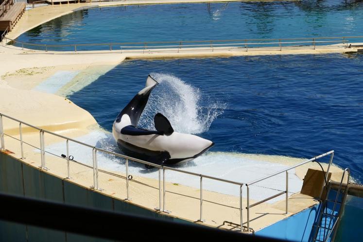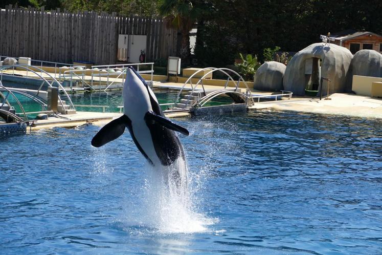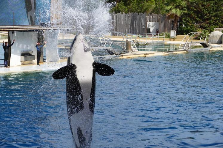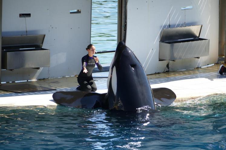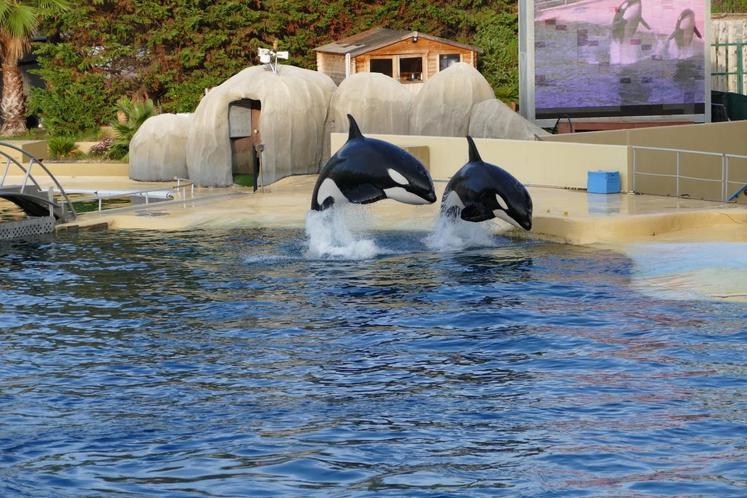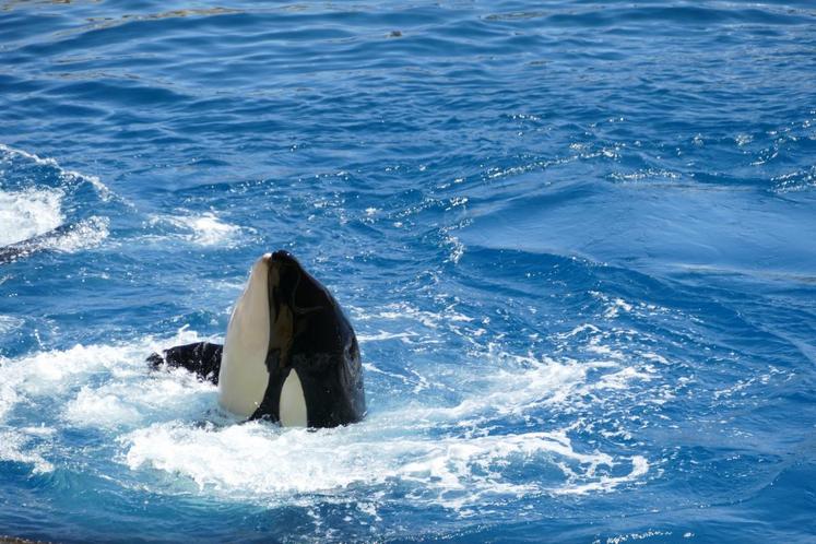 Le plus impressionnant ? Les orques qui jaillissent de part et d’autre des bassins. Le plus gros spécimen, qui pèse trois tonnes, fait une démonstration de sa puissance. Les représentations mettent en valeur les aptitudes à l’état naturel de ces animaux.