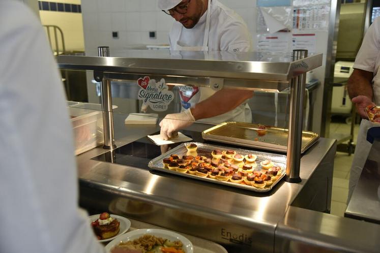 En mai dernier, le Loiret élisait son menu signature, résultat d’un concours inédit entre les quatre écoles hôtelières du département, d’un vote en ligne et d’un jury de Loirétains et de professionnels. La carte gagnante est composée, en entrée, d'une truite façon gravlax, pesto de betterave et vodka, légumes pickles et blinis safranés à la mousse de chèvre, d'une selle d’agneau de Sologne, petits pois-carottes revisités en guise de plat, et d'un pithiviers fondant au citron vert, gelée et salade de fraises fraîches, glace à la faisselle de chèvre pour le dessert. Les produits de ce menu sont 100 % loirétains, bruts et de saison. Jeudi 15 septembre, les élèves du collège Léon-Delagrange à Neuville-aux-Bois ont eu la chance de goûter une déclinaison de ces recettes.