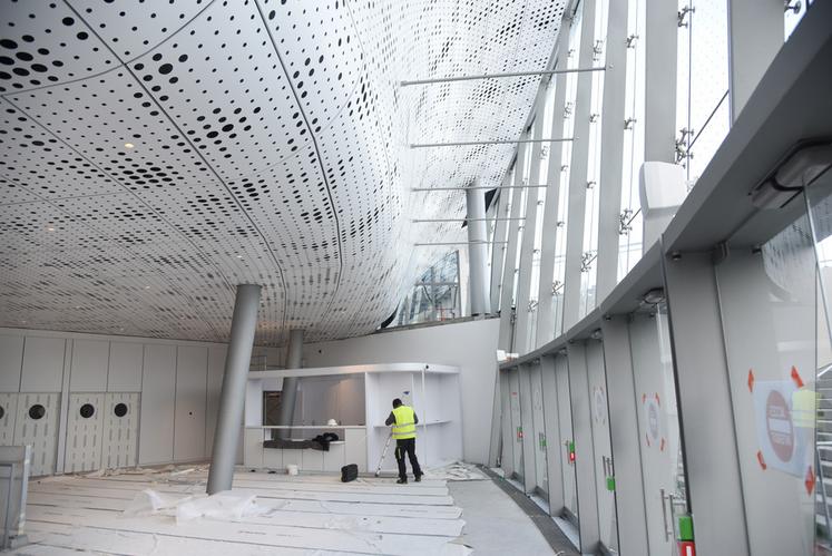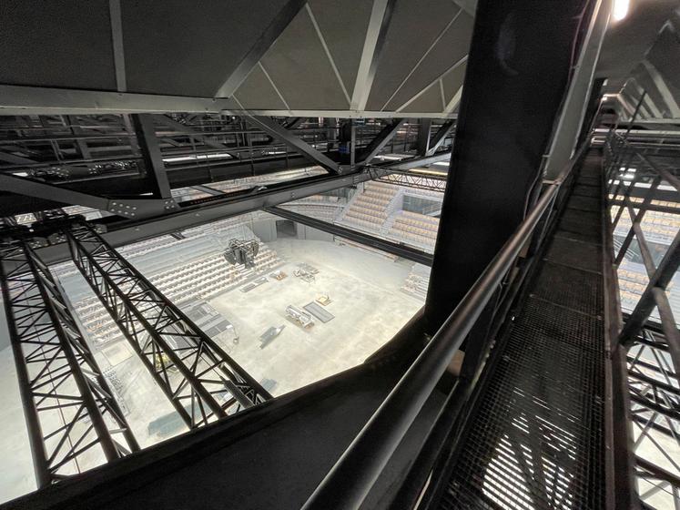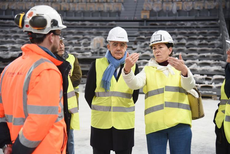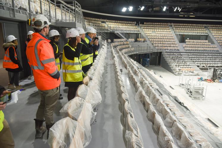 Des espaces techniques aux passerelles qui courent au-dessus de la salle qui accueillera à partir d'avril spectacles et rencontres sportives, en passant par la salle d'entraînement, la salle de musculation, les salles de soin, les vestiaires, les espaces techniques, rien n'a échappé au préfet. C'est Karine Dorange, en charge des grands équipements pour la collectivité territoriale, qui lui a livré toutes les explications nécessaires.