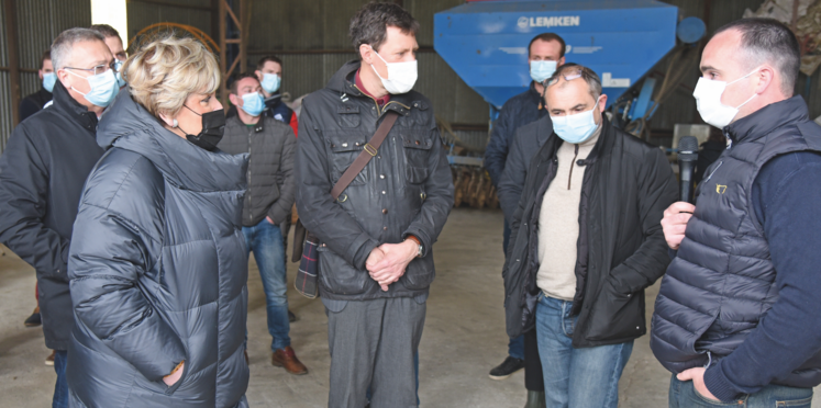 À l'invitation de la FNSEA et Jeunes agriculteurs d'Eure-et-Loir, le préfet Françoise Souliman découvre l'agriculture eurélienne en visitant, le 22 mars, la ferme de Julien et Sébastien Gault, à Langey.