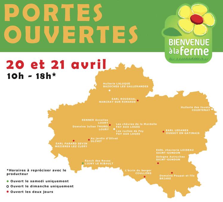 Ces samedi 20 et dimanche 21 avril, quinze producteurs loirétains, adhérents du réseau Bienvenue à la ferme, ouvrent les portes de leurs exploitations et proposent dégustations, découvertes, animations et loisirs.