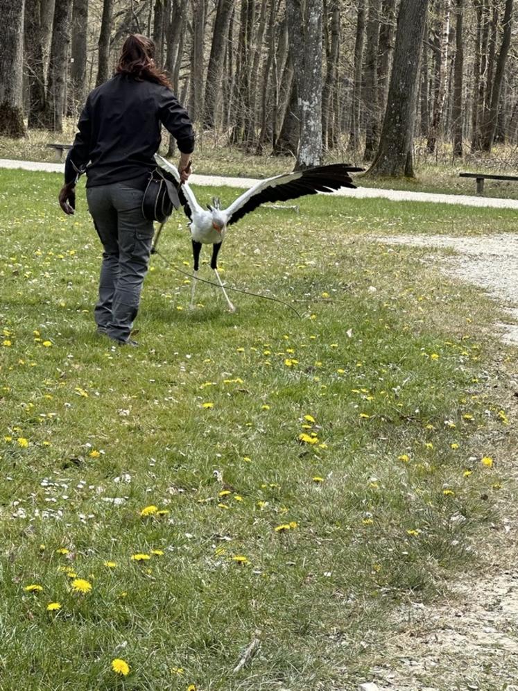 Un troisième espace est consacré à une mini-ferme. Ici, les animaux peuvent être caressés. Ensuite, la Forêt des aigles s'ouvre sur un circuit permettant d'observer des rapaces de très près et d'en apprendre plus sur eux grâce à des panneaux explicatifs. Plusieurs fois par jour, les oiseaux sont présentés en vol à l'occasion d'un spectacle de fauconnerie. Les spectateurs en prennent plein les yeux. Aigles, vautours, serpentaires, chouettes, faucons..., évoluent à quelques mètres d'eux, voire centimètres lorsque certains frôlent les têtes ou décident de se poser tout près.