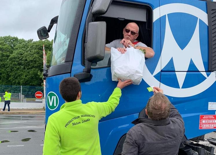 Les 29 et 30 avril, la FRSEA Île-de-France a mené une opération de distribution de paniers aux routiers au niveau du péage de Saint-Arnoult (Yvelines).
