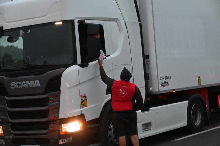 Dès 6 heures du matin, les premiers tracteurs sont arrivés. À partir de 7 h 30, plusieurs tracteurs ont ralenti la circulation, sans jamais la bloquer totalement. « On n’est pas là pour bloquer, mais simplement pour exprimer notre colère. On a besoin de se faire entendre », a déclaré l’un d'eux. Des tracts ont été distribués aux automobilistes et camionneurs. « On est avec vous ! », ont lancé de nombreux automobilistes, tandis que des camionneurs ont fait résonner leurs klaxons en signe de soutien. « On se sent soutenus, ça fait plaisir », confiait un manifestant.