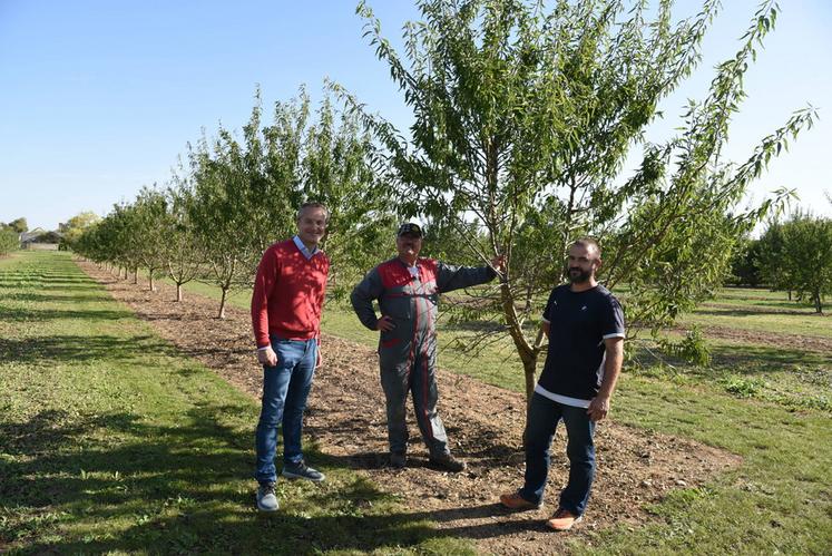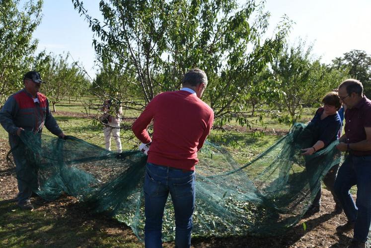 Les représentants de la SAS Les Amandes de Pithiviers, de l’association Site remarquable du goût de l'Amanderaie du Pithiviers et du PETR* Beauce-Gâtinais en Pithiverais se sont rendus à Guigneville (Loiret) mardi 10 octobre afin de visiter l’amanderaie de Jean-Chistophe Solon et assister à la fin de sa première récolte d’envergure.