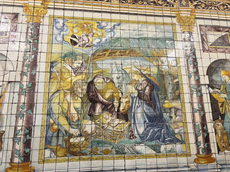 Au fil de la visite, on découvre également l'évolution des couleurs. La technique de la faïence ou majolique développée au cours de la seconde moitié du XVIe siècle a élargi la gamme de tons, initialement limitée à quatre couleurs de base (bleu, vert, rouge et jaune). Un exemple notable est le panneau Notre Dame de la Vie, composé de 1 498 azulejos :