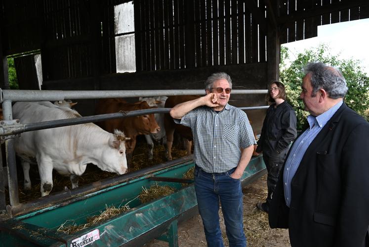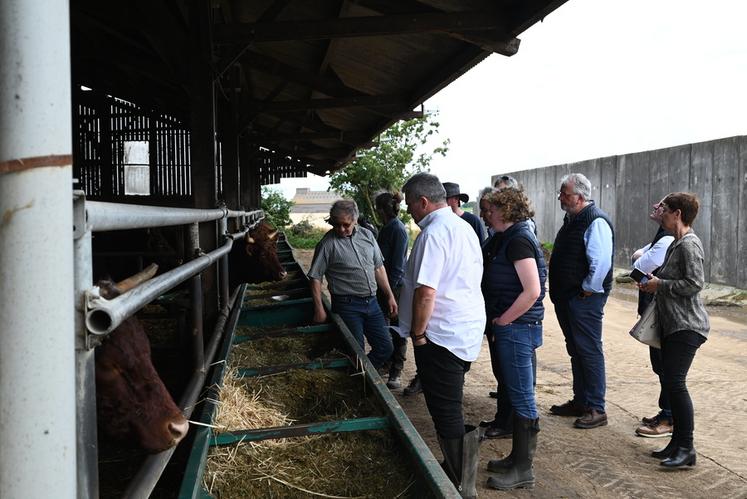 Les présidents des différentes fédérations départementales de boucherie sont venus visiter l’exploitation de Pierre Bourbon, éleveur allaitant à Boisseau, lundi 17 juin, en présence de Jean-François Guihard, président d'Interbev.