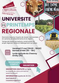 Au terme du renouvellement général des conseils d'administration des cantons, des départements et de la région Jeunes agriculteurs, les nouveaux administrateurs ont souhaité organiser un temps d'échanges et de travail autour de la nouvelle mandature qui court jusqu'en 2026. Ainsi, l'Université de printemps régionale se tiendra les 17 et 18 mai à Amilly.
