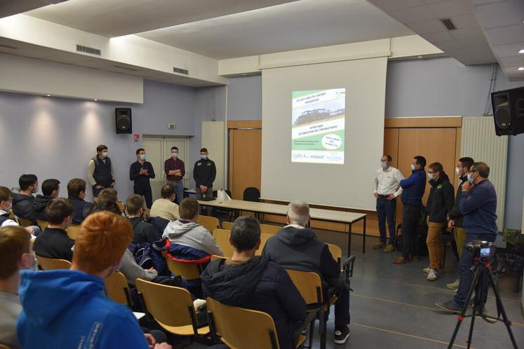 Dans notre édition du 3 décembre, nous vous avions présenté le projet de Gabin Fontvieille, Clément Jacob, Paul Baecke et Luc Bignon, quatre étudiants en deuxième année de BTSA GDEA* au lycée du Chesnoy. Dans le cadre de leur Projet d'initiative et de communication (Pic), ils avaient organisé le 16 novembre une demi-journée de démonstration de semoirs. Jeudi 13 janvier, c’était au tour des trois autres groupes de la formation de dévoiler leurs projets. L’objectif de ces différentes présentations est de permettre aux élèves, ainsi qu’aux professionnels invités (agriculteurs, présidents de Cuma, concessionnaires, etc.), d’observer et d’analyser les études réalisées sur place.