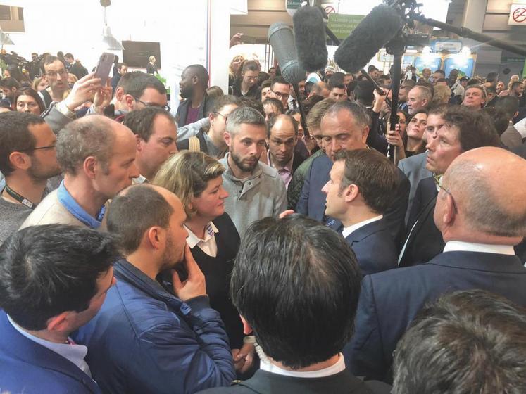 Finalement, un échange de près de trente minutes avec des agriculteurs du Grand bassin parisien a pu avoir lieu dès l’arrivée d’Emmanuel Macron.