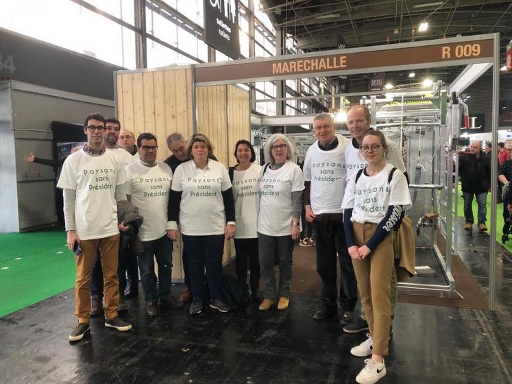 Les agriculteurs d’Île-de-France ouest et de Seine-et-Marne avaient donc décidé d’interpeller silencieusement le Président de la République dès son arrivée au salon en portant des tee-shirts « Paysans sans président » et en arborant des pancartes avec des messages tels que « Non aux ZNT » ou « N’importons pas l’agriculture dont nous ne voulons pas ».