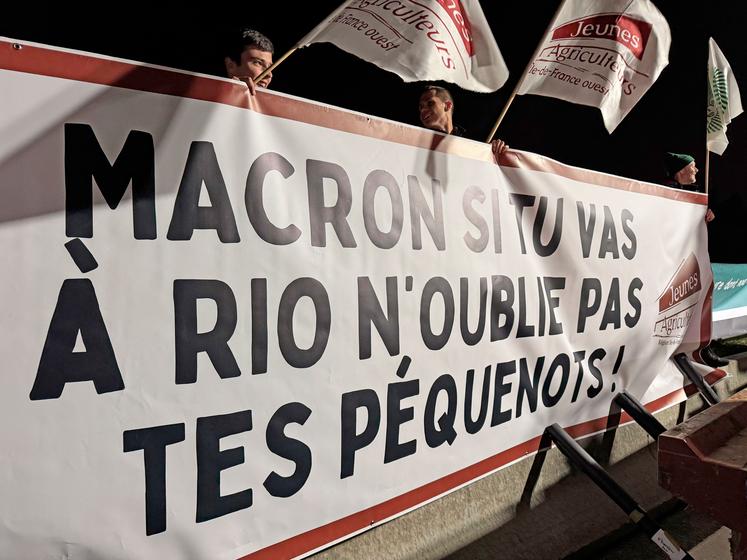 Dimanche 17 novembre, un convoi de tracteurs et de voitures venus de toute l'Île-de-France a convergé vers Vélizy-Villacoublay (Yvelines) en début de soirée. Les manifestants ont passé toute la nuit sur un bivouac improvisé et sont repartis le lendemain à 9 h 30. Si l'accord du Mercosur a cristallisé les oppositions, ce sont l'ensemble des revendications qui sont revenues sur le devant de la scène : simplification, souveraineté alimentaire, défense des moyens de production, trésorerie, installation des jeunes, etc.