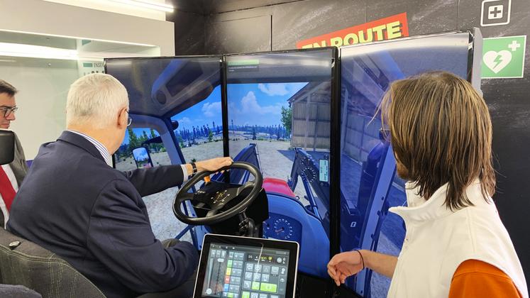 Lors de l'inauguration officielle de Saveurs olympiques, le préfet de Seine-et-Marne, Pierre Ory, s'est essayé à la conduite du tracteur sur le simulateur du camion L'Aventure du vivant.