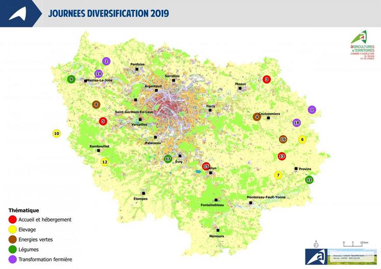 La chambre d’Agriculture de région Île-de-France lance la deuxième édition des Journées diversification, dédiée à 100 % aux agriculteurs d’Île-de-France. Pendant un mois et demi, de début février à mi-mars 2019, dix-huit exploitants agricoles ouvriront leurs portes pour faire visiter leurs ateliers et faire part de leurs expériences en matière de diversification.