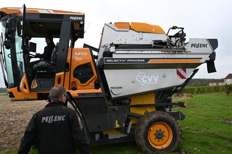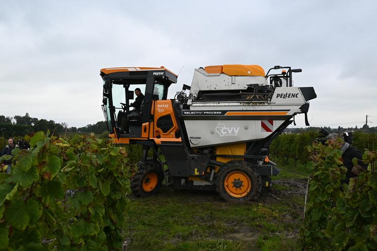 À l’initiative de la Cuma viti-vinicole de Cheverny, la concession Cloue Viti Vini (CVV) a présenté la machine à vendanger Optimum M10 avec tête de récolte Selectiv' Process 2 de la marque Pellenc lors d’une démonstration qui a eu lieu toute la journée dans les vignes du président de la Cuma, Alain Chéry.