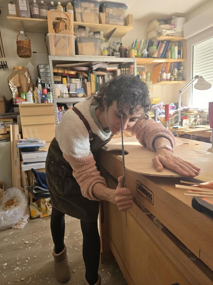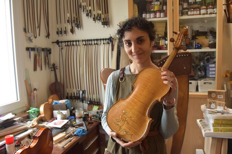 « En plus de la lutherie et de l'archèterie, je fais aussi de la sculpture et de la marqueterie pour rajouter des décorations avec des plaquages de bois et de nacre, précise la jeune femme. À terme, j'aimerais ne faire que la fabrication d'instruments. Ce que j'aime le plus, c'est fabriquer et personnaliser les instruments en les travaillant avec le client pour qu'ils soient à leur image ».