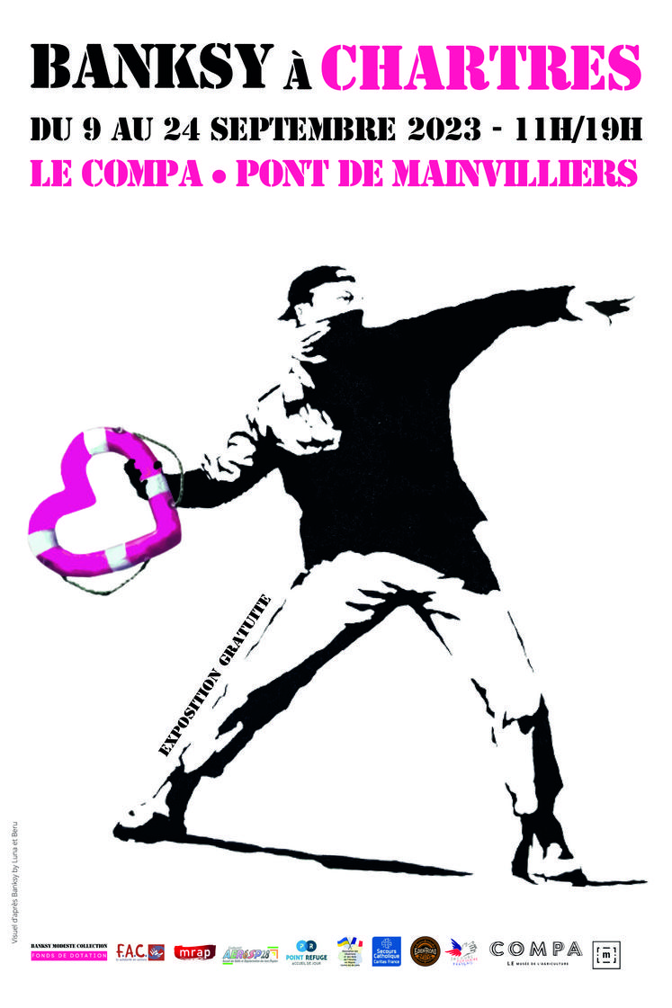 C'est l'exposition itinérante de l'association Banksy Modeste Collection qui sera donc présentée de 9 au 24 septembre au Compa à Chartres (Eure-et-Loir). Constituée par un collectionneur — le comédien François Berardino dit Béru — cette exposition réunit quelque 280 œuvres et objets de l'univers de l'artiste.