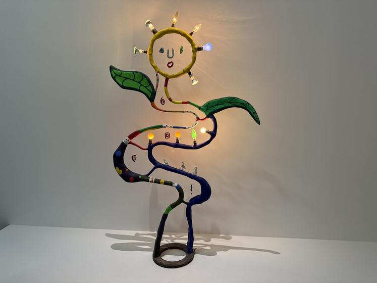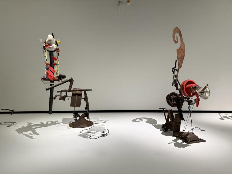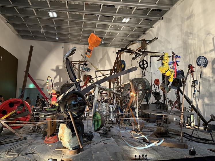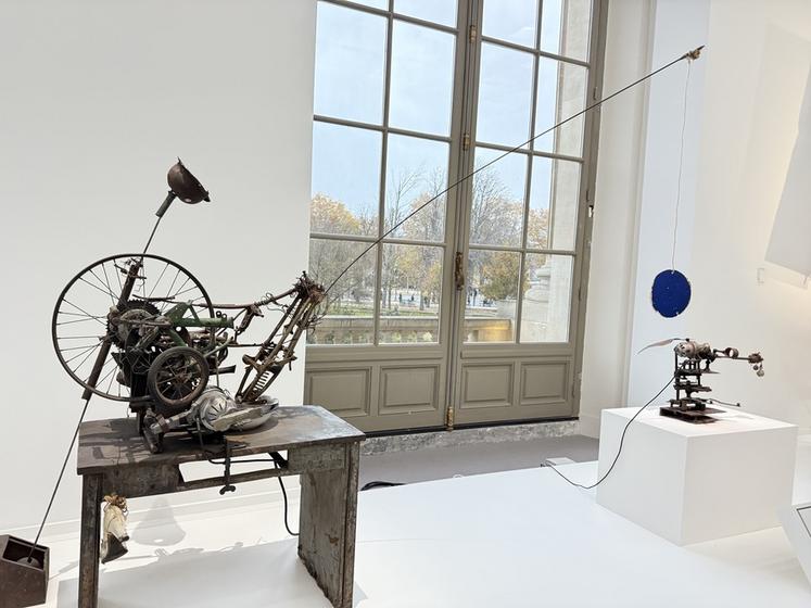 Pour comprendre ces œuvres, l’exposition revient aussi sur le parcours de Niki de Saint Phalle. Née dans une famille bourgeoise, mannequin dans sa jeunesse, elle traverse une période de crise qui la conduit vers la création. Autodidacte, elle invente un style personnel mêlant humour, engagement et imagination débordante. Dans les années 60, elle rejoint le mouvement du Nouveau réalisme, aux côtés de Jean Tinguely, sculpteur suisse qui deviendra son mari en 1971. Le parcours au Grand Palais met en lumière leur collaboration à travers la présentation de machines grinçantes et poétiques, comme la Machine à dessiner, créées par Jean Tinguely, qui dialoguent avec l'univers de Niki.