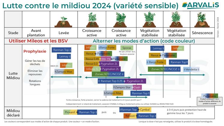 Pour lutter contre le mildiou efficacement, Arvalis propose aux producteurs de pommes de terre une codification couleur pour les aider à alterner les différents modes d’action.