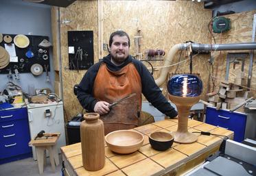 Du porte-clés à la lampe, en passant par un vase, Thomas Saint Georges, ébéniste tourneur, conçoit des objets…