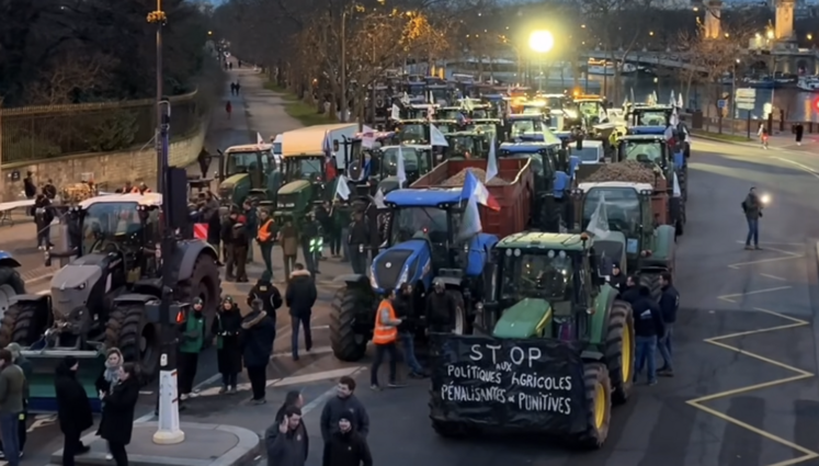 Plus de 400 tracteurs sont entrés dans Paris depuis 6 heures du matin à l'appel de la FNSEA Grand bassin parisien et des Jeunes agriculteurs. Venus du Nord, de l'Aisne, de l'Oise, d'Eure-et-Loir, du Loiret mais aussi de toute l'Île-de-France, les agriculteurs sont venus porter de très nombreuses revendications parmi lesquelles le traité du Mercosur, les sujets concernant l'eau (Sdage et Sage) et la directive Nitrates. Ils demandent également une loi spéciale qui embarquerait un certain nombre de sujets économiques et/ou structurants pour l'agriculture, comme la prédation.