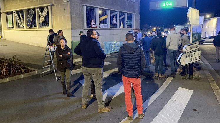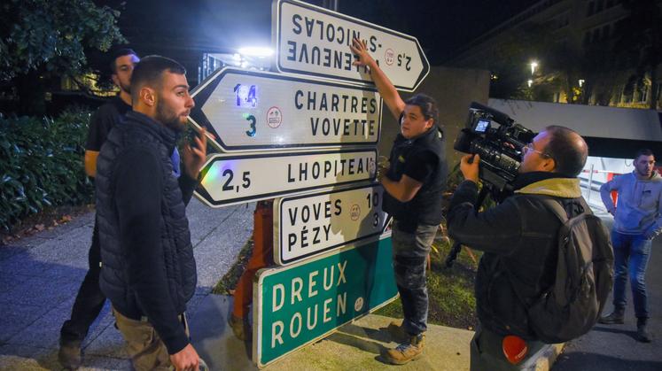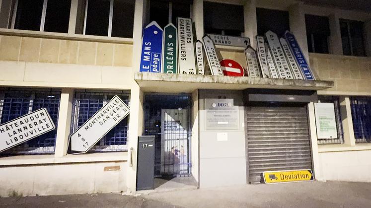 Après avoir retourné les panneaux d'entrée de communes au début des mobilisations, cette fois ils ont décidé de les échanger. Ainsi, dans chaque canton, une demi-douzaine de panneaux sont démontés et réinstallés dans un autre… Les adhérents ont également emprunté quelques panneaux de direction pour les fixer ensuite sur le mobilier urbain aux abords de la préfecture et de la DDT à Chartres. Une action tranquille qui est avant tout un avertissement : s'il n'y a pas d'évolution, FNSEA et JA sont bien déterminés à passer à la vitesse supérieure.