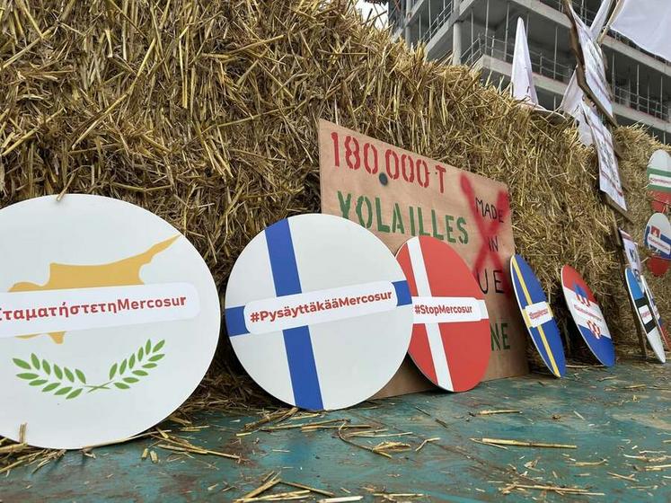 L’action s'est tenue à proximité du Parlement européen. Organisée sous le slogan #Stopmercosur, cette mobilisation flash a eu pour objectif de relancer l’opposition après la pause des fêtes de fin d’année.