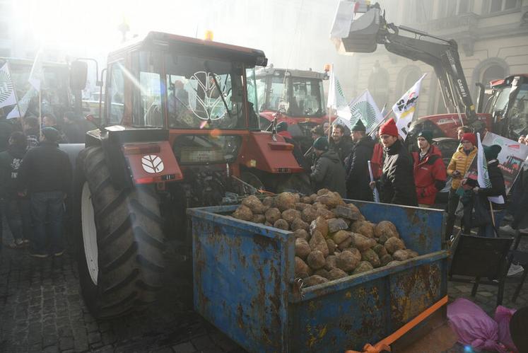 Jeudi 18 décembre, à Bruxelles (Belgique). Une délégation d'agriculteurs franciliens ont fait entendre leurs voix face aux nombreux sujets européens qui mettent en danger leurs exploitations.